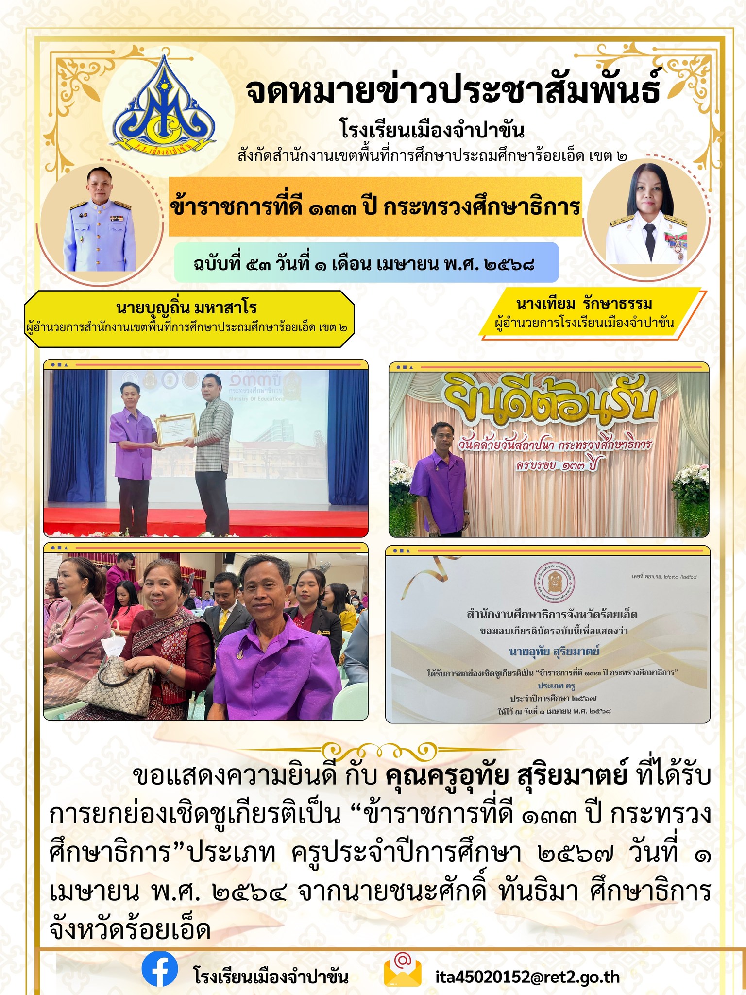 ข่าวประชาสัมพันธ์ โรงเรียน ฉบับที่ 53 18 เมษายน 256829 มิถุนายน 2025 ratapol_mck@gmail.com ข่าวประชาสัมพันธ์, จดหมายข่าวประชาสัมพันธ์ FacebookFacebookXXLINELine ratapol_mck@gmail.com